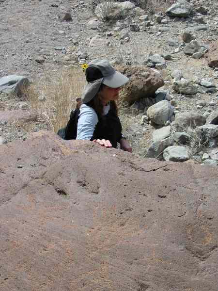 Kate DesLauriers at the petrographs near the Arazona Hotsprings.