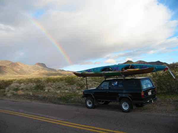 The rainbow on the road on the way out.