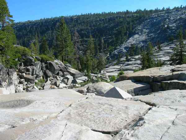 Natual granite spillway near the eadwaters of the Rubicon River.
