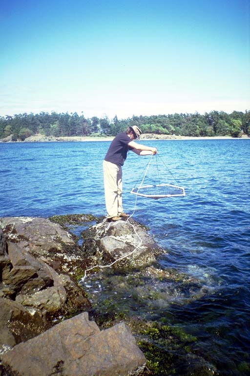 The intrepid kayaker tossing a crab net on D'Arcy Islands