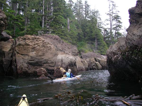 Don Barch paddling into a slot on Flores Island
