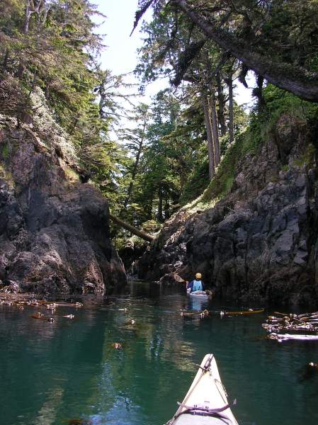 Don Barch paddles up a channel in Bartlett Island