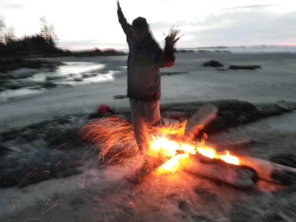 Tim Yarish walking the plank over the fire