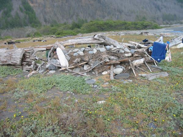 Driftwood and stone shelters on Miller Flat