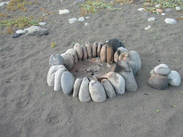 Driftwood and stone shelters on Miller Flat