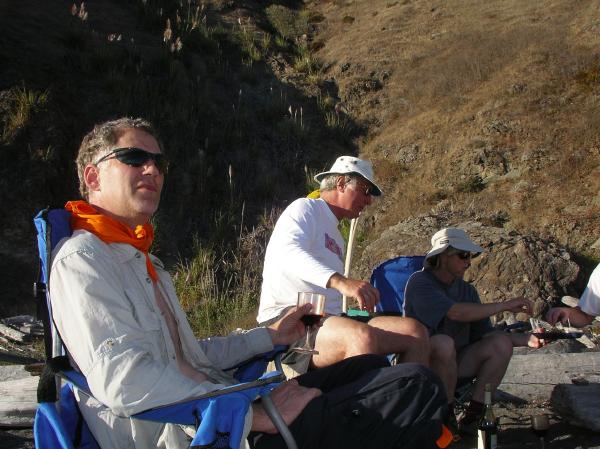 Dave Littlejohn, Fred Cooper and Dörte Mann eating on Lost beach