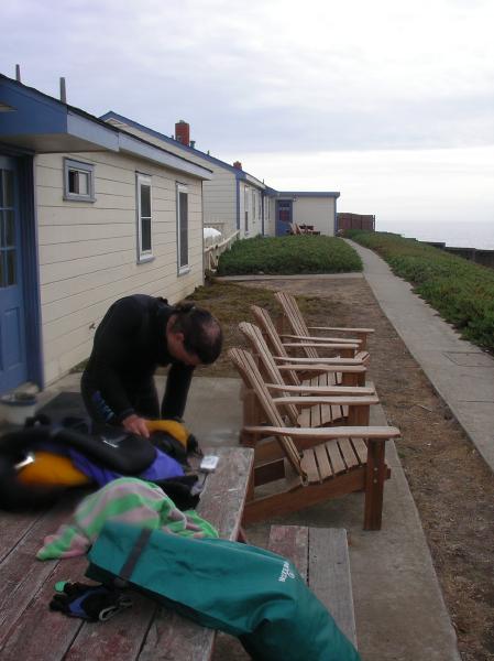 Gregg Berman hanging out gear behind the Pigeon Point Lighthouse