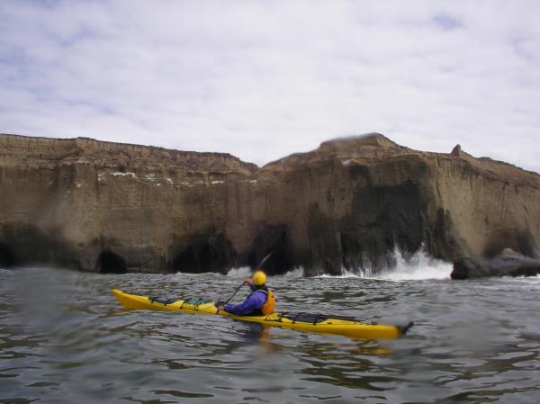Gregg Berman in front of limestone cliffs and caves south of Half Moon Bay