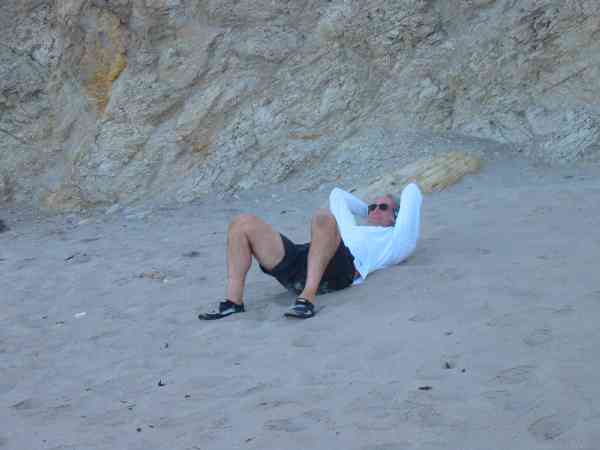 Fred Cooper waiting for John to get ready at Jamala Beach