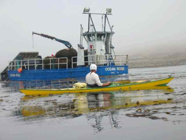 A kelp harvestor, getting food for the abalone at Point Estero?