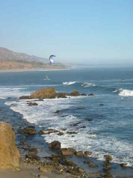 After landing, waves and surfers at Leo Carrillo State Beach