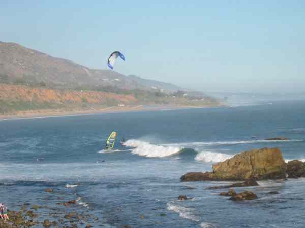Wind surfer and traction kiter at Leo Carrillo State Beach