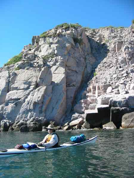 John Somers in front of rocky cliff - Isla Tiburon - Sonora