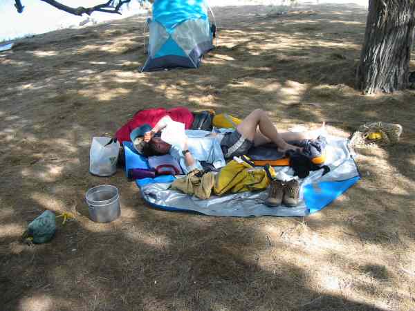 Lucy and Don in the shady campsite at Bahia Agua Dulce on Isla Tiburon