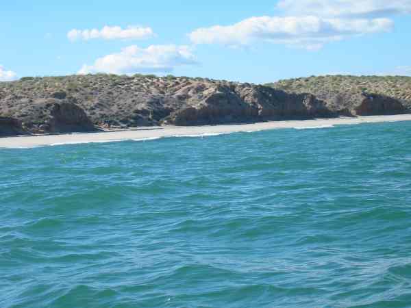 The long white sandy beaches of Bahia Agua Dulce on Isla Tiburon