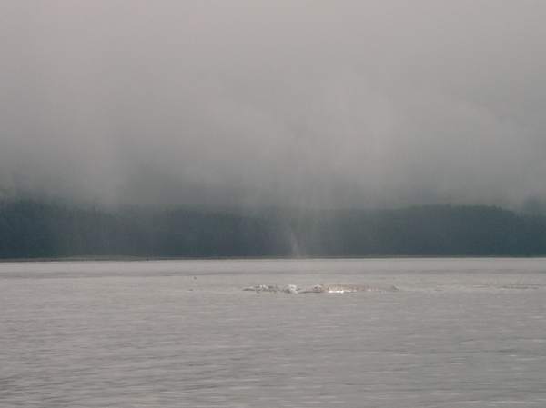 Grey whales feeding in shallow water just outsideHesquiat Bay