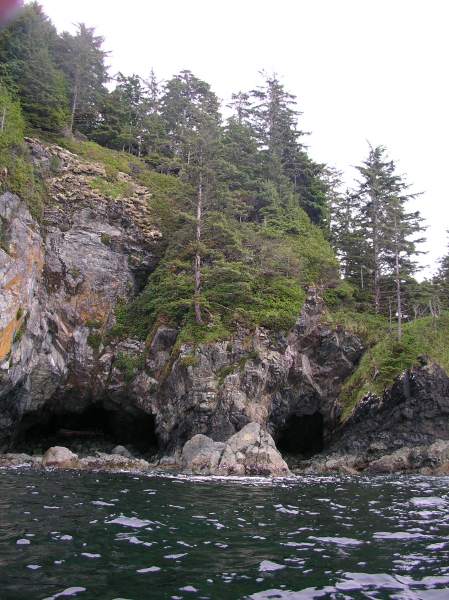The forest above dramatic cliffs and caves