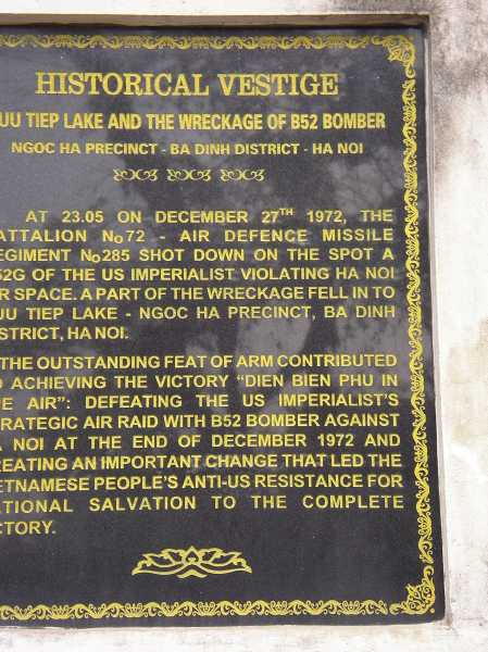Plaque about the Tuu Tiep Lake B52 wreckage