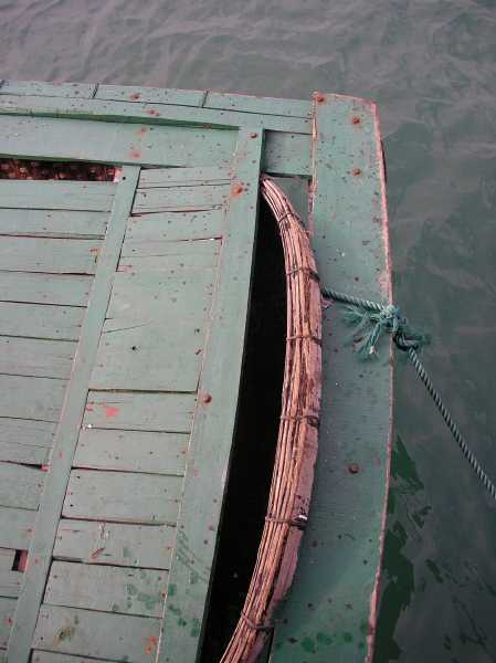 The 'limousine', a bamboo basket boat that serves as our dinghy