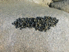 The smooth granite cobble is stacked into 100\'s of stone ducks