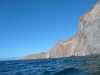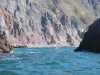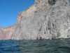 Steep rocky shoreline of the west side of Isla Tiburon