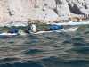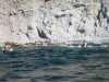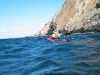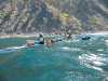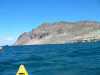 Kayaks in bumpy water on the west side of Isla Tiburon
