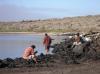 Charles Harris and Gregg Berman hiding behind a point from the wind