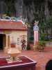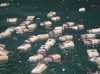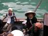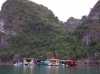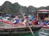 Kate DesLauriers paddling past a floating village on Ile Du Brandon