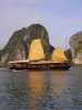 The 'limousine', a bamboo basket boat that serves as our dinghy