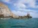 Looking down from the sandstone cliff on Isla San Jose