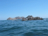 Gulls in front of Roca la Foca and Isla Turners
