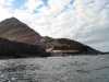 Steep rocky shoreline of the west side of Isla Tiburon