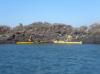 Charles Harris and Gregg Berman hiding behind a point from the wind