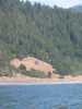 The shore is calm behind the canyon, then gets rough again at the next point.