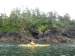Trees to the edge of the bluff and rocks standing on the beaches.