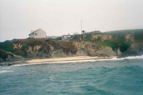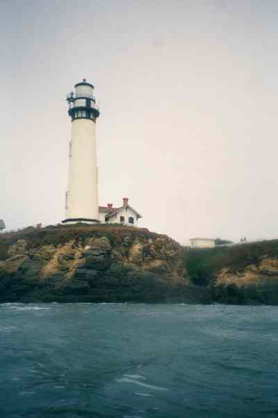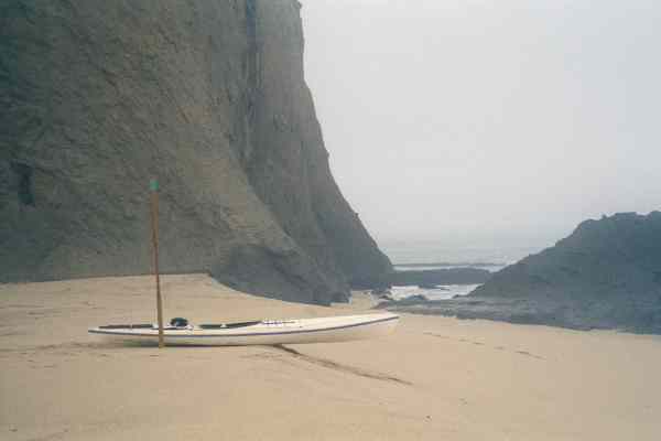 From this reef I caught the flash of the Pigeon Point Lighthouse! It was sticking up above the middle of a bluff. Why didn’t they put it on the point? I passed Bean Hollow State Beach, which had a very nice little protected cove that looked easy to land on. As I paddled farther south the lighthouse marched west until it was standing on a point past the bluff I first saw it above. One more point and two more kilometers I had to paddle. Drops of water on my chart hid from me the fact that Pigeon Point had a big rock-strewn reef in front of it. I also had to discover that by paddling around it.