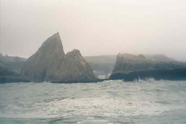 The next interesting spot on my chart was a little rock guarded cove called Martins Beach. This turned out to harbor a little community by the same name. It reminds me of Shelter Cove near Pacifica. I dared myself to surf between several of the larger rocks here and paddle through a rock garden. Isn’t this why I'm doing this trip in my Coaster kayak? On the way back out of the rock garden I disturbed a colony of harbor seals that I came upon suddenly. I said "sorry guys" but they all jumped into the water.