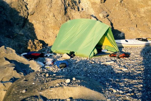 I zoomed out the other side into calmer water and worked my way around to the protected beach. As I passed between rocks I saw a wind surfer go by! But by the time I landed, two wind surfers had landed far up the beach and started carrying their gear towards the nearby Mattole Road. I picked the most protected place I could find to camp out of the wind but playful gusts kept blowing on me all evening.