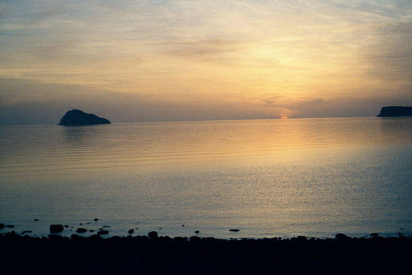 I boiled water, threw in the success rice and brought it to a boil again. The instructions say that you have to simmer it for 10 minutes, but at Konstantin’s suggestion I just set the pot aside for 20 minutes off the burner. I cut the onion up and started sautéing it in olive oil flavored with a little sesame oil. I added some dried mushrooms that I only re-hydrated for a half an hour or so, longer would have been better. I added the pine nuts when the onions were starting to turn clear (just to brown the pine nuts a little). I poured in some mirin and soy sauce and let it cook down until it started to thicken up. I added some more mirin and then sprinkled the peanut dressing mix over everything and stirred it until it started to thicken up again. A whole package of Success Rice looked like too much so I gave half of it to Sid for his dinner and poured the rest into the sauce and stirred it until the rice was evenly coated. Use a slightly larger onion, add some more mushrooms, re-hydrated red bell peppers, or other vegetables, and the sauce will cover a whole package of success rice and should serve four people if you have other entrees to go with it. I expected a half a package of success rice to fill me and leave enough left over for breakfast. But it was SO GOOD that I ate it all right there! Konstantin and Sid both had a taste and agreed that it was a very good dish. And it was made from leftovers that I had carried in my kayak for the whole trip!