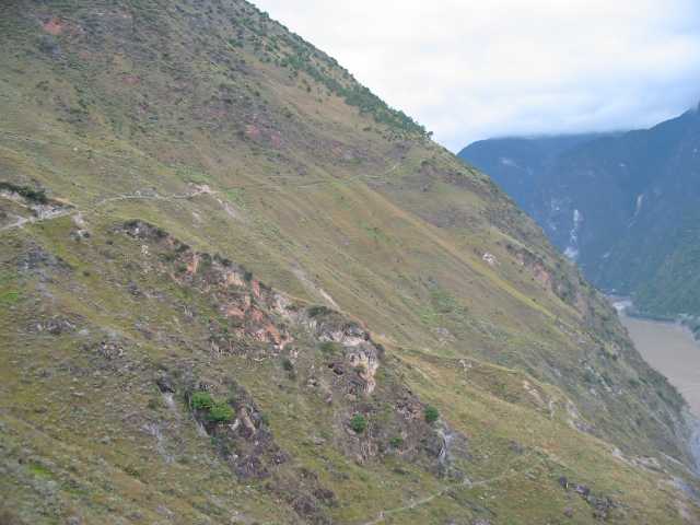 There is a gorge on the Yangtze River called "Tiger Leaping Gorge". The river is so narrow through here that, according to legend, a tiger once leapt across to escape the hunt. Joe Petolino read up on this area and learned about some interesting hiking trails. Joe and I decided to use our two days in the town of Lijiong to hike some of these trails.
