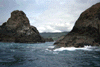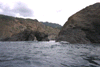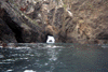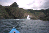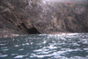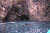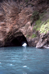 Waves breaking out of a cave, and the view back in the other side.