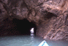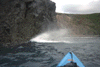 the kayak just outside the exit of the cave where I paddled out and landed.