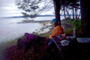 Stopping for lunch on Coal Island. Landing in Tortoise Bay on Portland Island. Images from a trip around Portland Island: Steaming a crab that I caught for dinner.