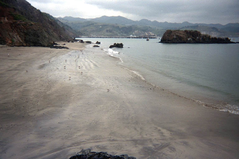 The lighthouse and the end of the breakwater at Port San Luis.The Point Sal expedition pictures continue here.