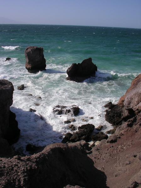 Rough water breaking on the shore of Isla San Marcos