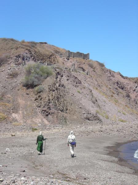 Andrea Wolf and Herbe Howe heading back to camp from the mining town