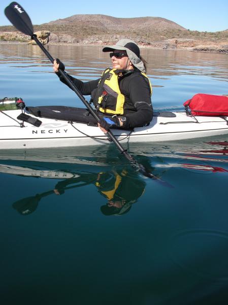 Kate DesLauriers in calm water heading for San Nicolas