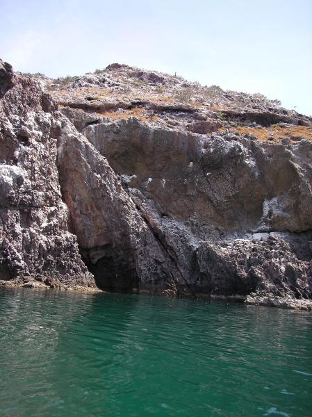 The west shore of Isla San Idelfonzo has many caves