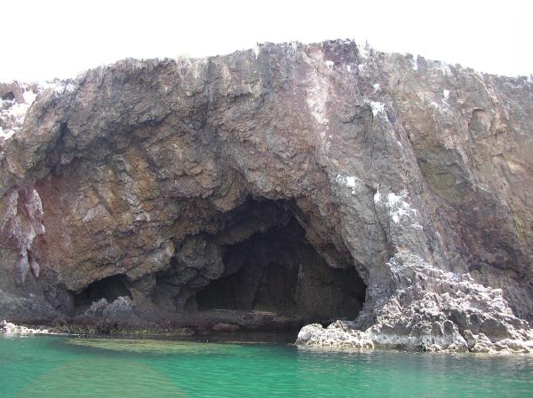 Large cave in Isla San Idelfonzo with landing beach inside