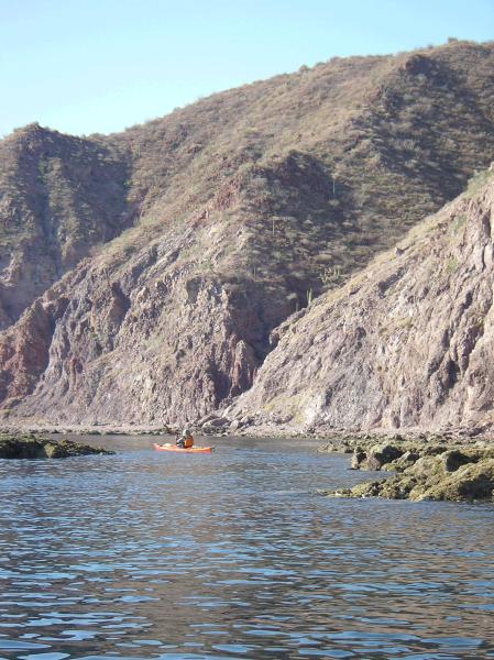 Doug Hamilton paddling away from camp in the morning